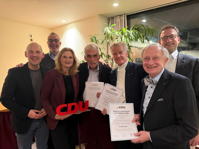 Anlässlich unser Mitgliederversammlung am 18.11.2025 wurden der Pfarrer im Ruhestand Robert Widmann für seine 25 Jahre Mitgliedschaft in der CDU geehrt und unglaubliche 69 Jahre ist Manfred Bürklen nun in der CDU! Beide Jubilare wurden vom Vorsitzenden Joachim Oehler, CDU Kreisvorsitzender Dr.…